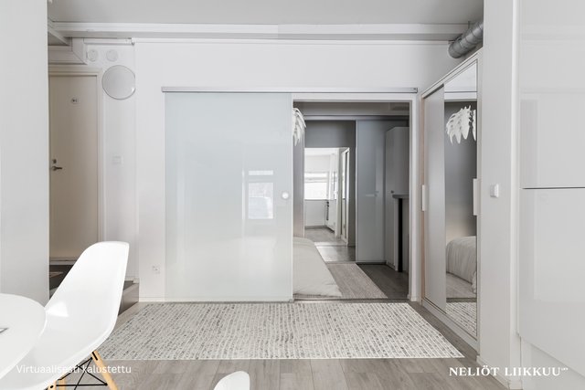 Mukavan kokoinen alkovi soveltuu erinomaisesti makuuhuoneeksi ja säilytystilat ovat poikkeuksellisen hyvät: käytössäsi on tilava vaatehuone sekä kellarikomero. Huoneisto on remontoitu kattavasti vuonna 2015, jolloin se sai modernin ja ajattoman ilmeensä. Kylpyhuoneesta löytyy pesukoneliitäntä sekä on viimeistelty tyylikkäästi mikrosementillä vuonna 2015.