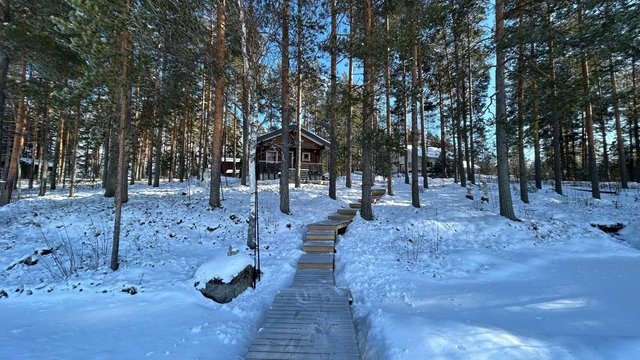 Tämä upea hirsitalo Vuonislahdessa, tunnettu myös nimellä Hupelin taiteilijatalo, tarjoaa ainutlaatuisen mahdollisuuden asua luonnon helmassa – aivan vesistön äärellä.
