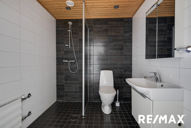 - WC-istuin, suihku, peilikaappi, pesuallas, bidee-suihku, pesukoneliitäntä, allaskaappi, ja suihkuseinä