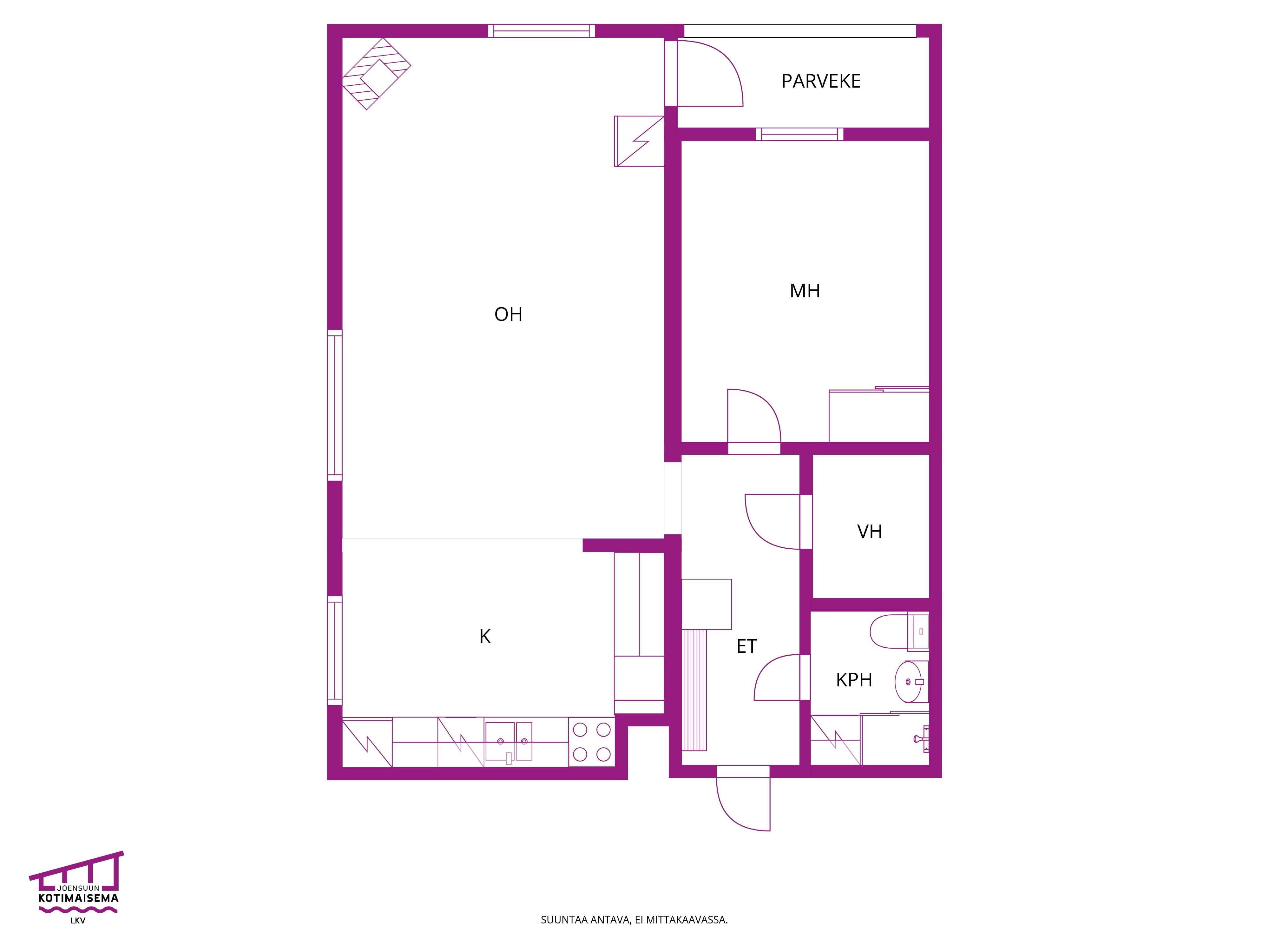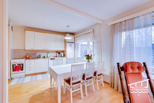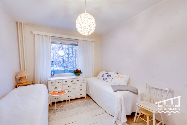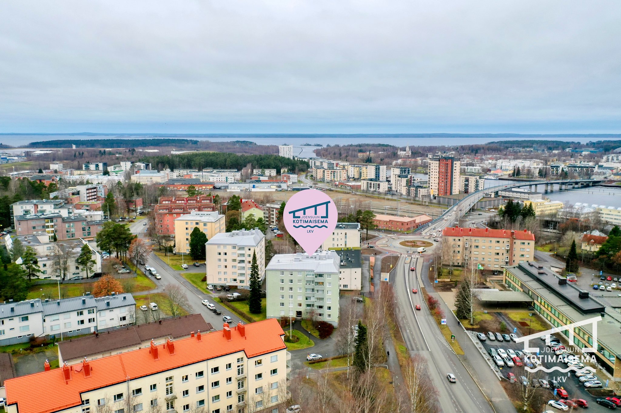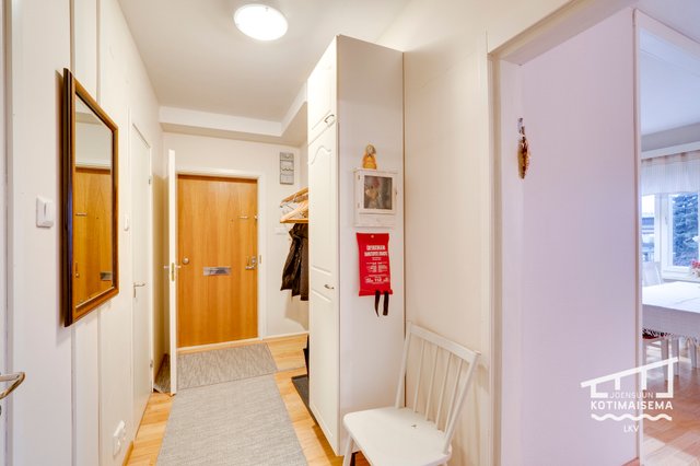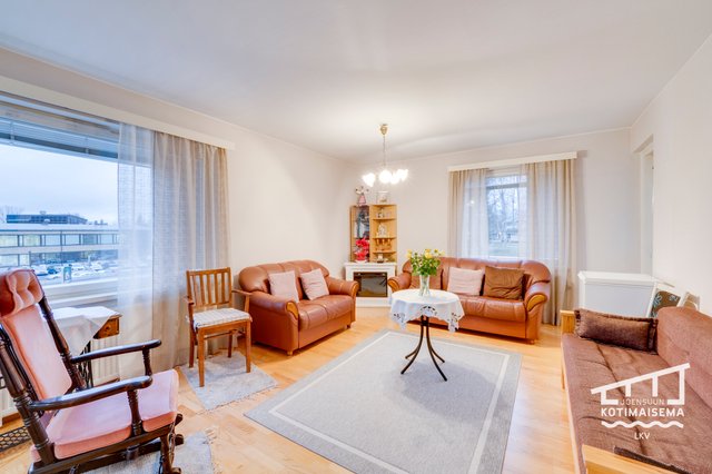 Tämä valoisa ja tilava ensimmäisen asuinkerroksen kaksio sijaitsee Niinivaaran rauhallisella alueella, vain lyhyen matkan päässä Joensuun keskustasta. Asunnon 61 neliötä tarjoavat mukavasti tilaa asumiseen ja huoneiston on pinnoiltaan siistissä kunnossa. Olohuoneesta käynti parvekkeelle. Keittiö ja olohuone on mukavasti yhdistetty yhtenäiseksi tilaksi, makuuhuone on reilun kokoinen ja säilytystilaa löytyy vaatehuoneesta eteisen yhteydestä.