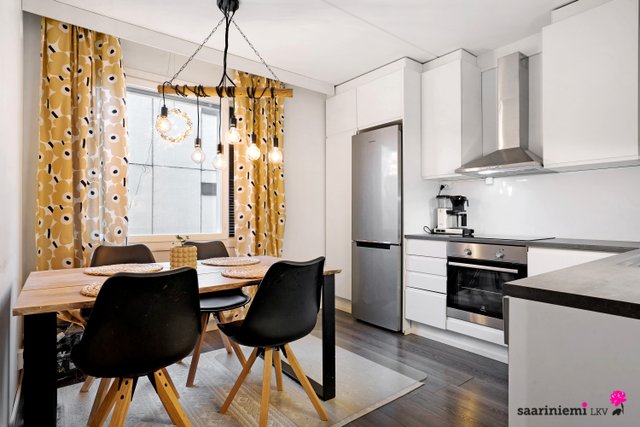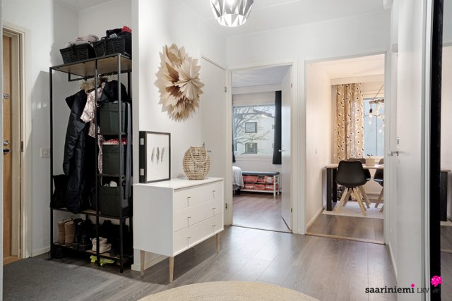 Tyylikäs keittiö on remontoitu v. 2017 ja se sijaitsee erillään olohuoneesta, mikä tarjoaa hyvät puitteet niin ruoanlaittoon kuin etätyöskentelyynkin. Asunnossa on oma sauna ja kylpyhuoneessa on paikka pesutornille. Olohuoneeseen v. 2022 asennettu ilmalämpöpumppu tuo mukavaa viilennystä kesän lämpiminä päivinä. Olohuoneesta on myös kulku parvekkeelle. Säilytystilaa tarjoaa kodin kaappien ja vaatehuoneen lisäksi käytössä oleva häkkivarasto sekä taloyhtiön varastotilat.
