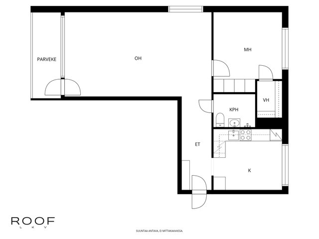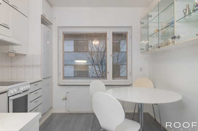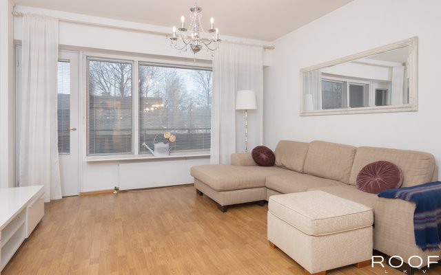 Ensimmäisen kerroksen kaksio omalla tontilla sijaitsevasta taloyhtiöstä. Selkeä pohjaratkaisu: erillinen keittiö, olohuone, makuuhuone sekä vaatehuone. Kylpyhuoneessa on pesukoneliitäntä. Olohuoneesta on käynti lasitetulle parvekkeelle.