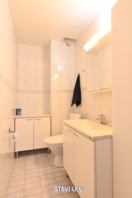 - Suihku, pesukoneliitäntä, pesukone, peilikaappi, pesuallas, ja allaskaappi