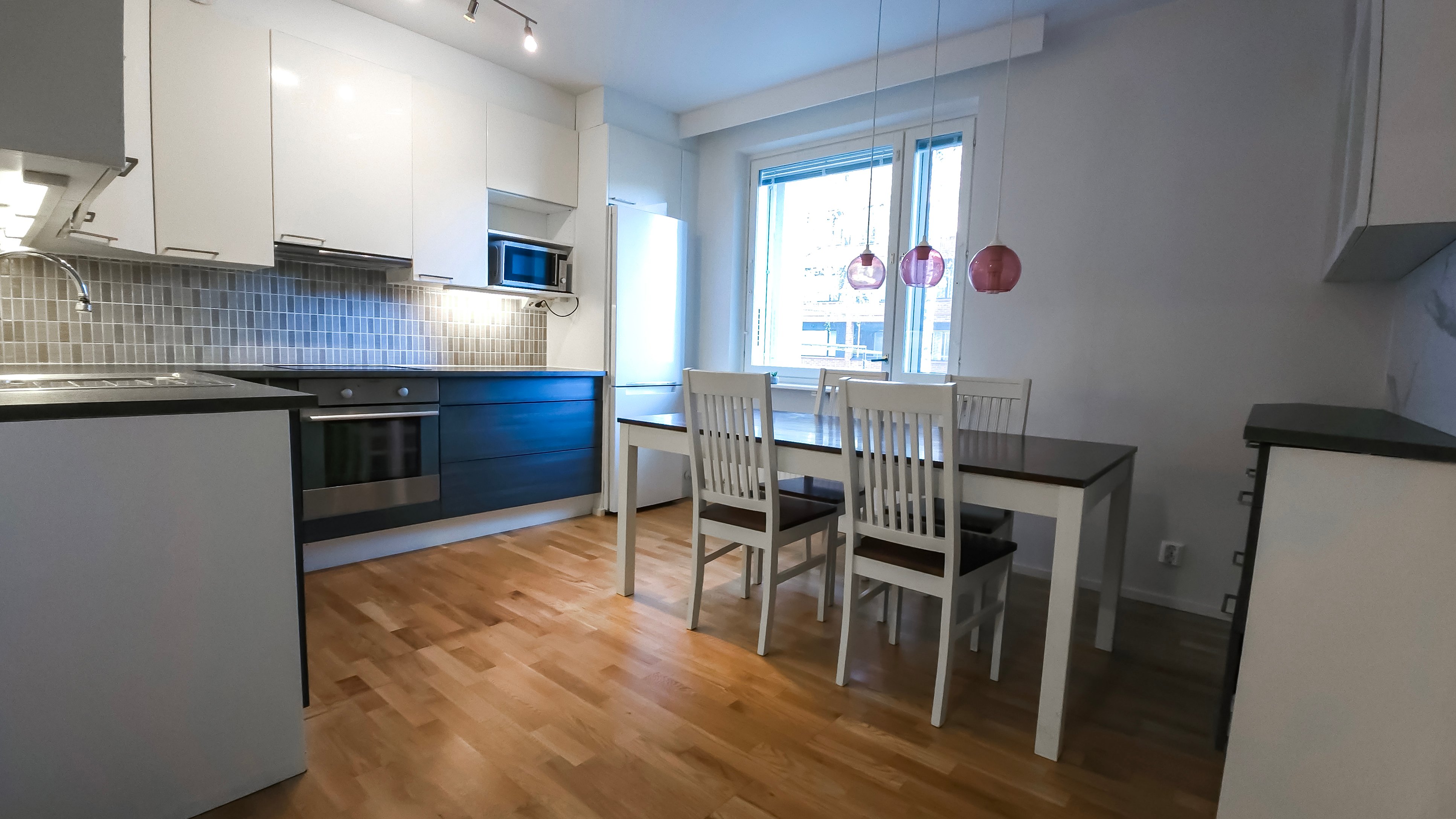 Huoneisto on hyvässä kunnossa sillä se on remontoitu kauttaaltaan pari vuotta sitten käyttötarkoituksen muutoksen yhteydessä. Suuressa ja hyvin varustellussa keittiössä mahtuu useampikin kokki loihtimaan aterioita. Täysin laatoitetussa kylpyhuoneessa on sekä sadesuihku että suuri poreamme. Lattiat ovat tammiparkettia ja seinät maalattu.