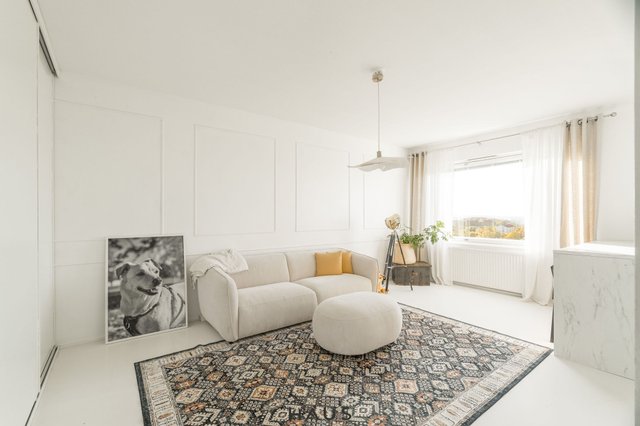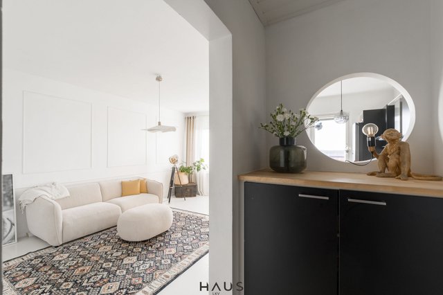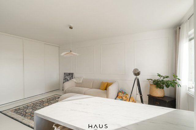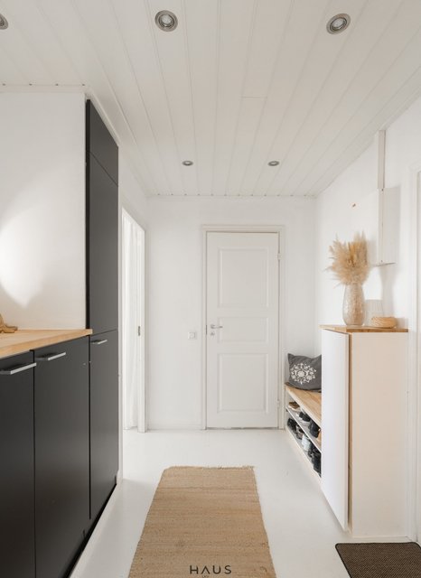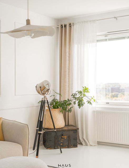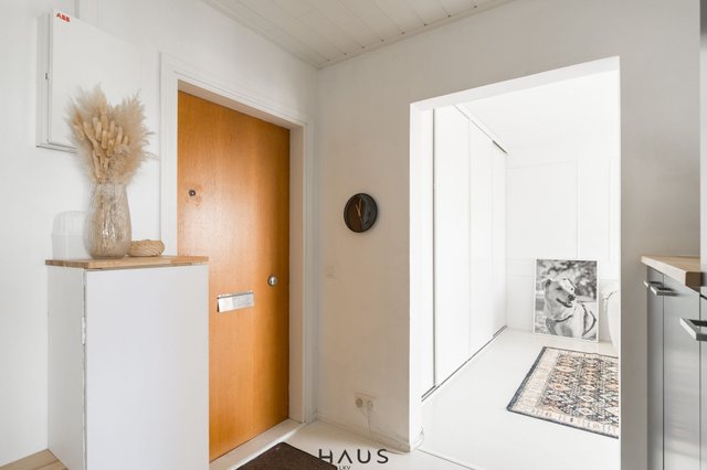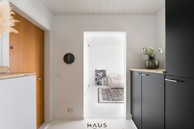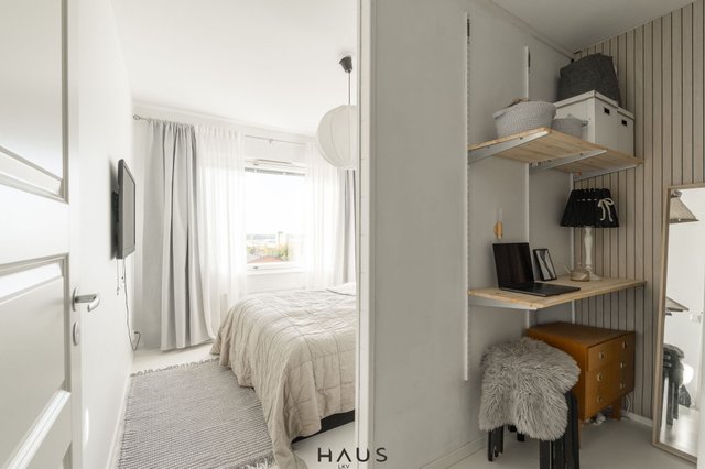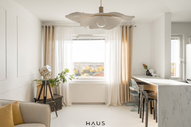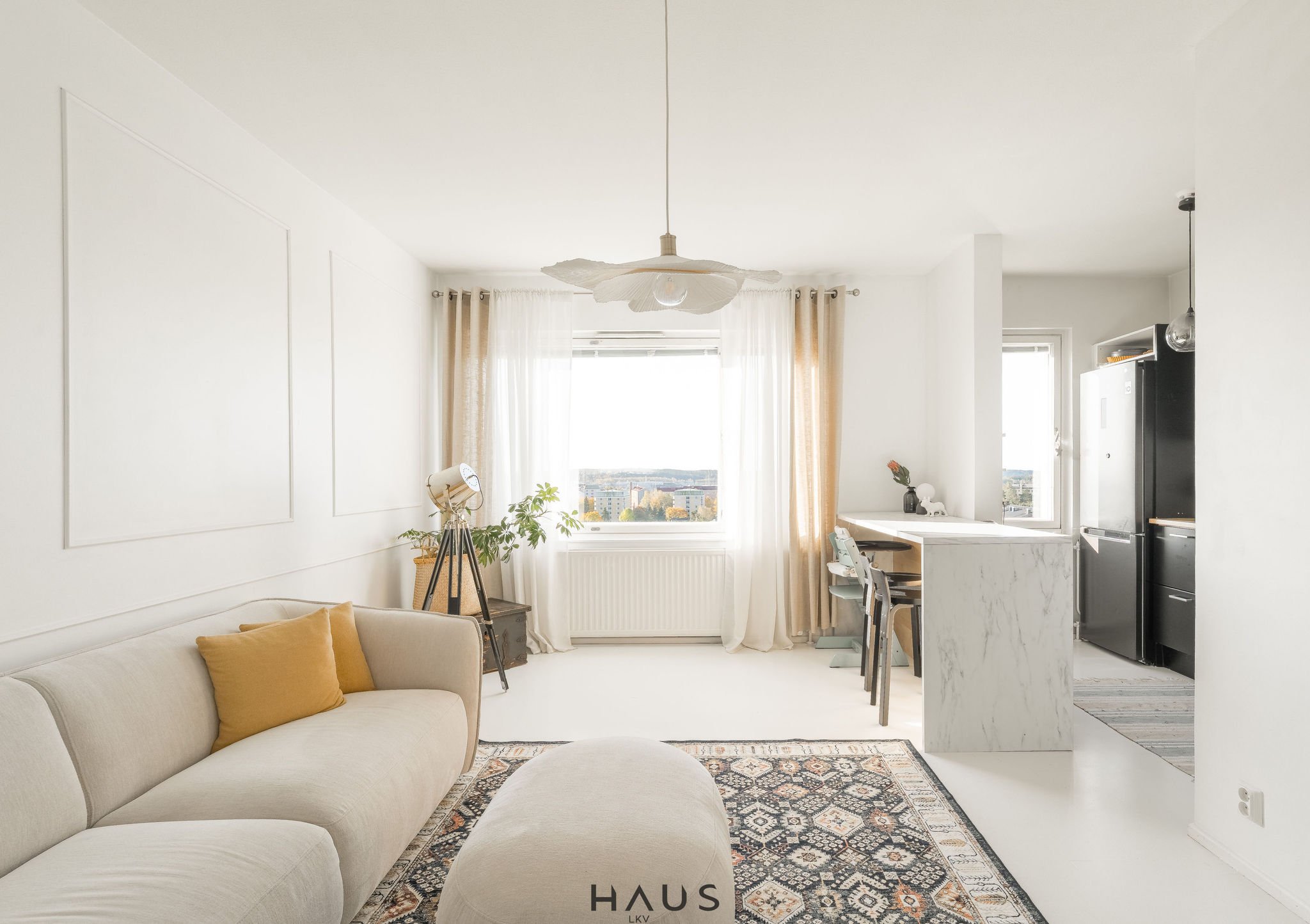 Tämä koti hurmaa kauneudellaan ja toimivuudellaan: vaaleat pinnat, hyvä pohjaratkaisu ja harmoninen tunnelma tekevät siitä viehättävän. Asunnossa on kauniita yksityiskohtia, kuten olohuoneen seinien koristelistat, eteisen kaapisto ja keittiöön avautuva ikkuna ja makuuhuoneeseen rakennettu erillinen työtila, jossa etätöiden tekeminen sujuu miellyttävästi. Säilytystilaakin asunnosta löytyy neliöihin nähden runsaasti - makuuhuoneessa, olohuoneessa ja eteisessä on erittäin hyvin sisustukseen upotettua kaappitilaa.