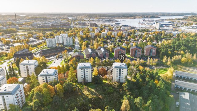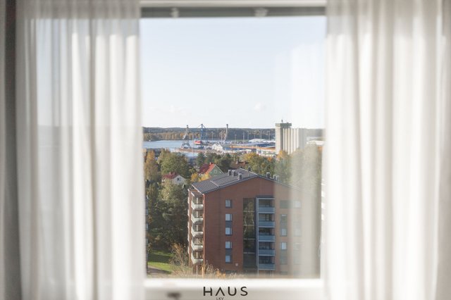 Asunto sijaitsee seitsemänkerroksisen talon ylimmässä kerroksessa, josta avautuvat ehkä koko Turun upeimmat maisemat – voit seurata ikkunasta ruotsinlaivojen lähtöä ja saapumista satamaan.