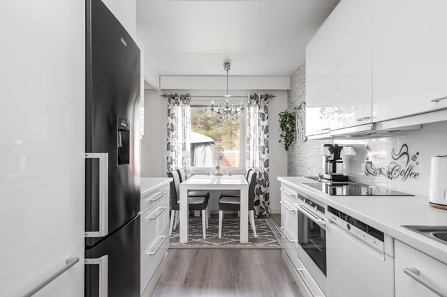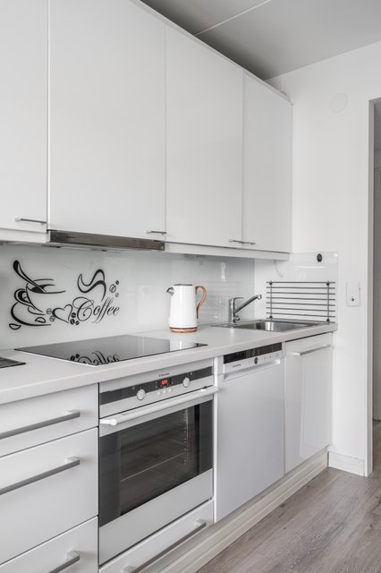 - VARUSTUS: Induktioliesi, Liesituuletin, Uuni, Hana, Kaapisto, Allas, Astianpesukone, Jääkaappipakastin SEINÄT: Maali, Tapetti LATTIA: Vinyylilankku