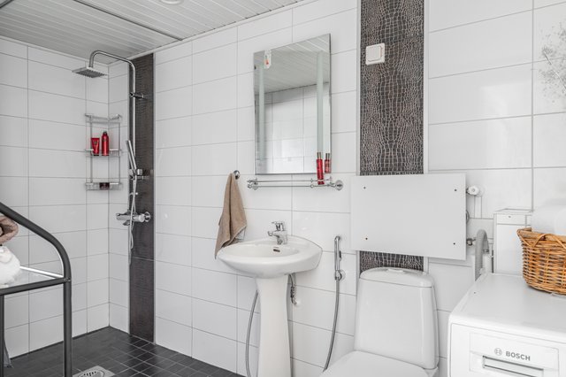 - VARUSTUS: Suihku, Pesukoneliitäntä, Hana, Allas SEINÄT / LATTIA: Laatta