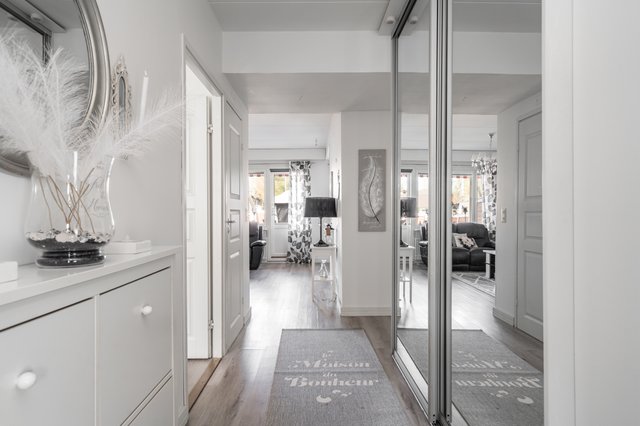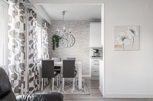 Tervetuloa tutustumaan käytännölliseen ja viihtyisään rivitalokolmioon Vantaanlaaksossa. Tämä yhdessä tasossa oleva 82 m2:n koti tarjoaa selkeän ja toimivan pohjaratkaisun, jossa tilat on jaettu fiksusti arjen sujuvuutta ajatellen.