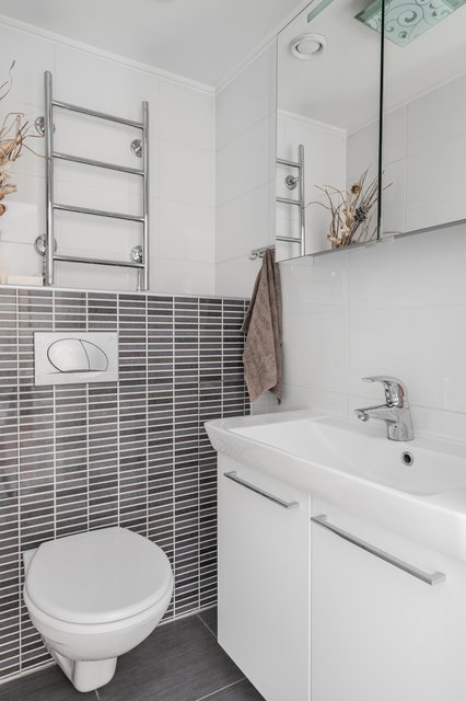 - VARUSTUS: Wc.istuin, Hana, Allas, Peilikaappi, Allaskaapisto, Lattialämmitys SEINÄT / LATTIA: Laatta