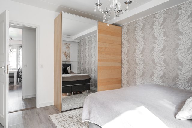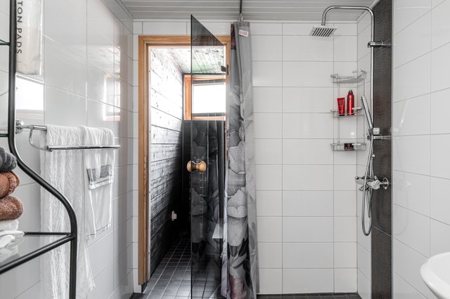 Asunnossa on kaksi makuuhuonetta, joista toisessa on vaatehuone. Erillinen WC ja kylpyhuone helpottavat arjen toimivuutta, ja rentoutumiseen kutsuu oma sauna. Eteisessä on kaapistot säilytystä varten ja erillinen tuulikaappi lisää asumismukavuutta. Päätyasunto tarjoaa omaa rauhaa.