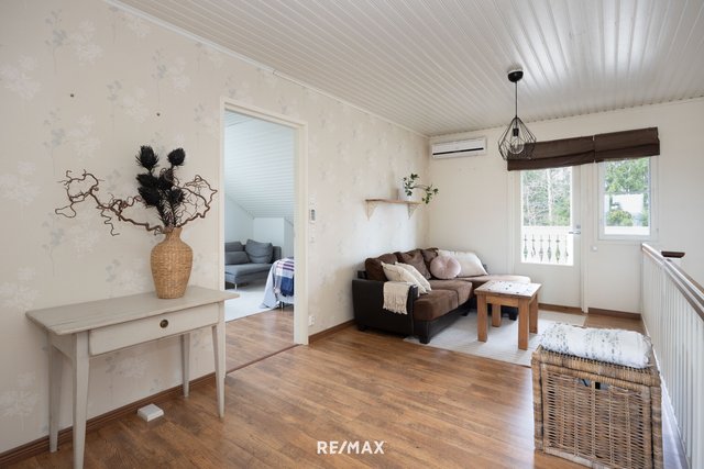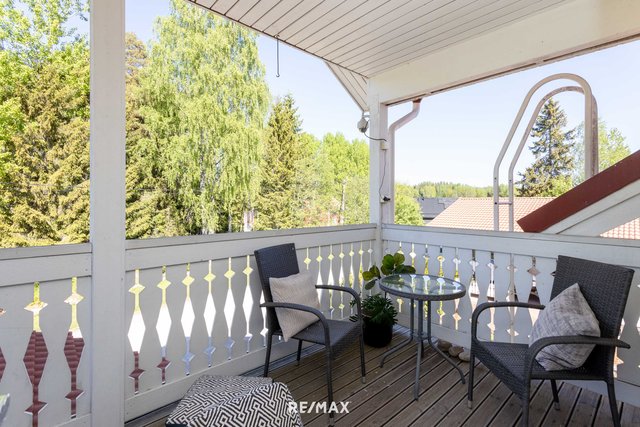 - YLÄAULA: Käynti parvekkeelle. Keskuspölynimurin rasia aulassa. Ilmalämpöpumppu. PARVEKE: Yläkerran ilmalämpöpumpun ulkoyksikkö parvekkeella. TULOETEINEN: iso tila, missä on istuinpenkki säilytyslaatikoilla, kaapisto (hyllykaappi ja tuplaleveä tankokaappi). LASITETTU TERASSI: Noin 22 m², liukuovet ulos pihalle ja ulkoterassille. Terassilla on kaksi infrapunalämmitintä. AVOTERASSI: Avoterassiosuudella on ulkoporeamme.