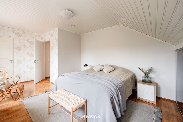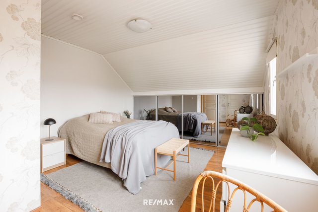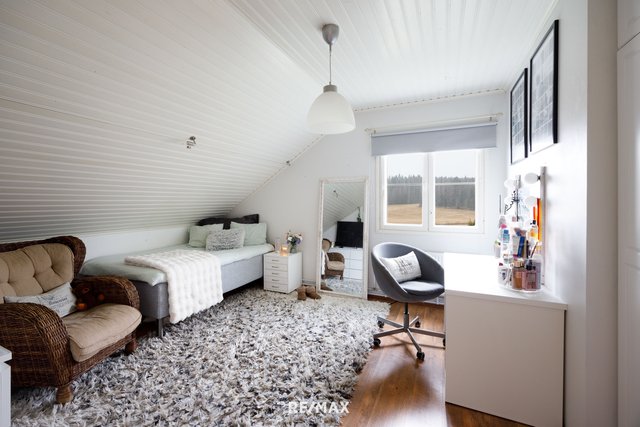 - YLÄKERTA: 4 makuuhuonetta. Päämakuuhuoneen yhteydessä on vaatehuone ja peililiukuovellinen säilytystila. Kahdessa muussa makuuhuoneessa on vaatekaapit. Maisemamakuuhuoneessa/työhuone vanhat puupariovet. ALAKERTA: 1 makuuhuone/työhuone (parilasiovet).