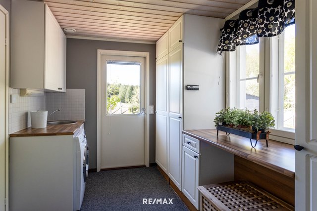 - Pesukoneliitäntä, silityspöytä/taso (ulosvedettävä silityslauta), keskuspölynimuri (kaapissa), ja iv-kone ja lämminvesivaraaja