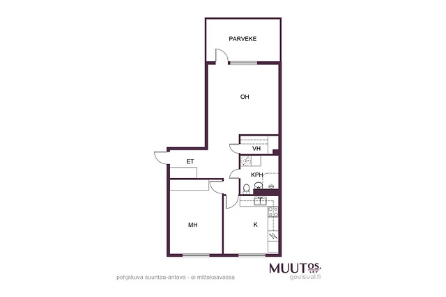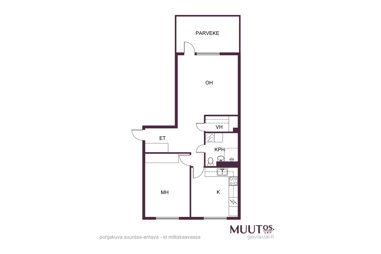 - Edellä mainittu pinta-ala saattaa tämän ikäisessä kohteessa poiketa olennaisestikin huoneiston nykyisen ja rakentamisaikaisen mittaustapojen ja standardien mukaan laskettavasta pinta-alasta. Huoneiston todellinen pinta-ala voi olla yhtiöjärjestyksessä, isännöitsijäntodistuksessa ja esitteessä mainittua pienempi tai suurempi. Hinta ei ole pinta-alaperusteinen. Yhtiöjärjestyksen mukainen huoneistoselitelmä: 2h+k.