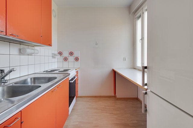 Sijainti on erittäin kätevä, kaikki lähipalvelut lyhyin kävelyetäisyyksin. Rauhallinen ja hyvin hoidettu yhtiö pääkadun varrella.
