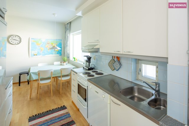 - Jääkaappipakastin, liesi (Uusittu 9/25), astianpesukone (Uusittu 9/25), ja liesituuletin
