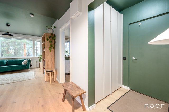 Tässä huoneistossa pohjaratkaisu on selkeä ja toimiva, ja vuonna 2023 tehty remontti on tuonut asuntoon yhtenäisen ja harkitun ilmeen.