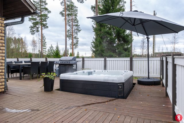 - Tilava terassi, jossa riittää tilaa kesäkalusteille ja jossa voit rentoutua upotetussa poreammeessa.