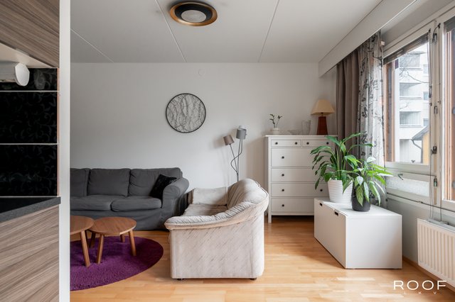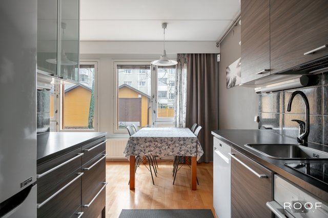 Keittiö on moderni ja hyvin varusteltu, mikä tekee ruoanlaitosta nautinnollista. Kolme makuuhuonetta tarjoavat monipuoliset mahdollisuudet perheen tarpeisiin, ja asunnossa on oma sauna rentouttaviin hetkiin arjen keskellä. Lisäksi asunnossa on oma varastotila, joka tuo lisää säilytystilaa arjen tarpeisiin.
