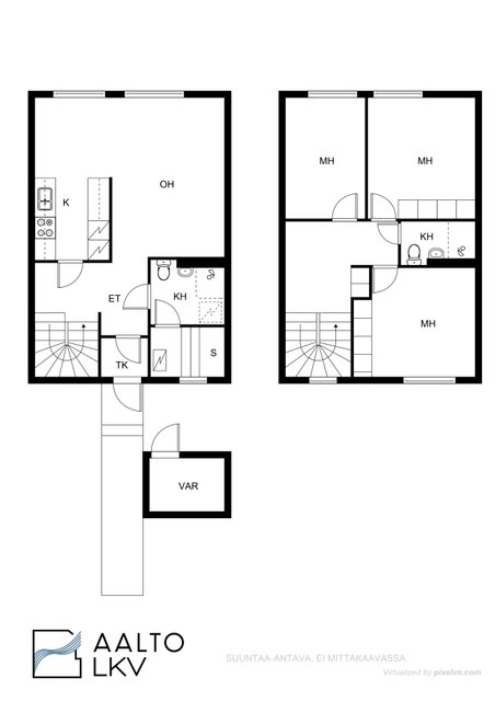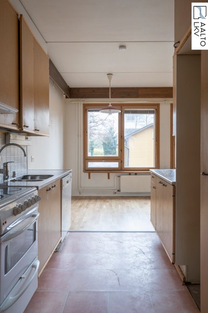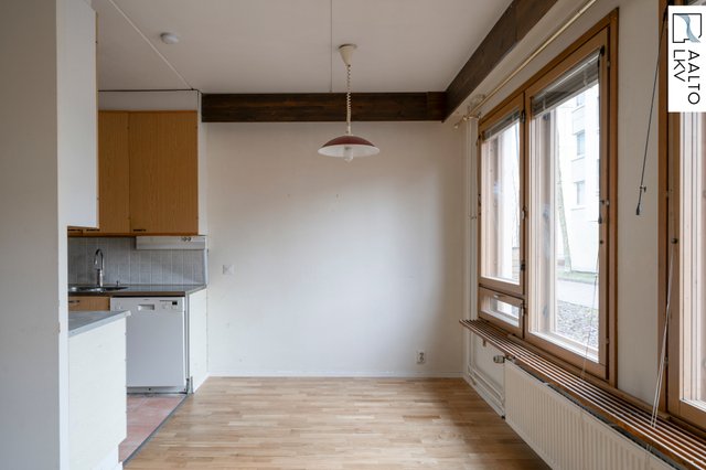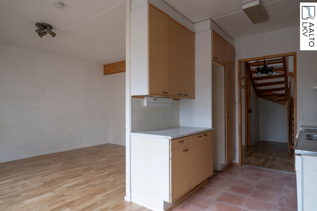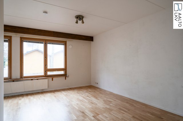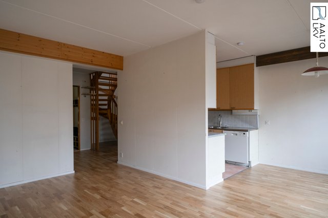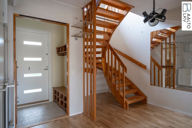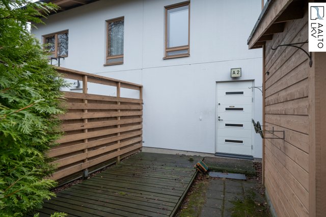 Tilava ja viihtyisä rivitalohuoneisto, jonka alakerrassa on olohuone, keittiö, ruokailutila, kylpyhuone ja sauna. Yläkerrassa on kolme makuuhuonetta ja kylpyhuone. Alakertaan ja yläkerran aulatilaan on juuri asennettu uusi parkettilattia ja väliovet on uusittu. Etupihalla on ulkovarasto. Etupiha on luoteen suuntaan. Jokaiselle huoneistolle kuuluu pistokkeellinen autopaikka.