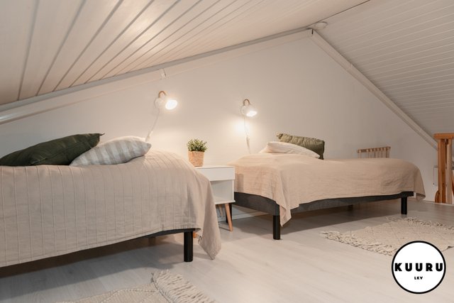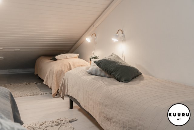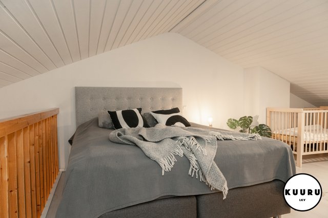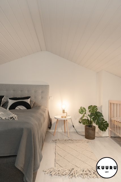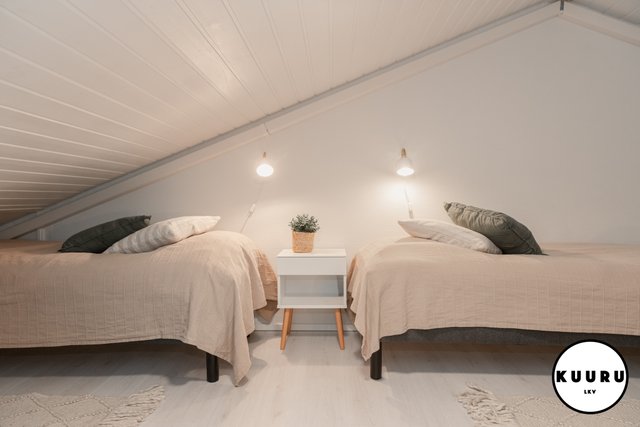 - Tämän loma-asunnon parvi toimii makuuhuoneena, jossa mukavasti tilaa parivuoteelle ja lisävuoteille, sekä mukavasti säilytystilaa.