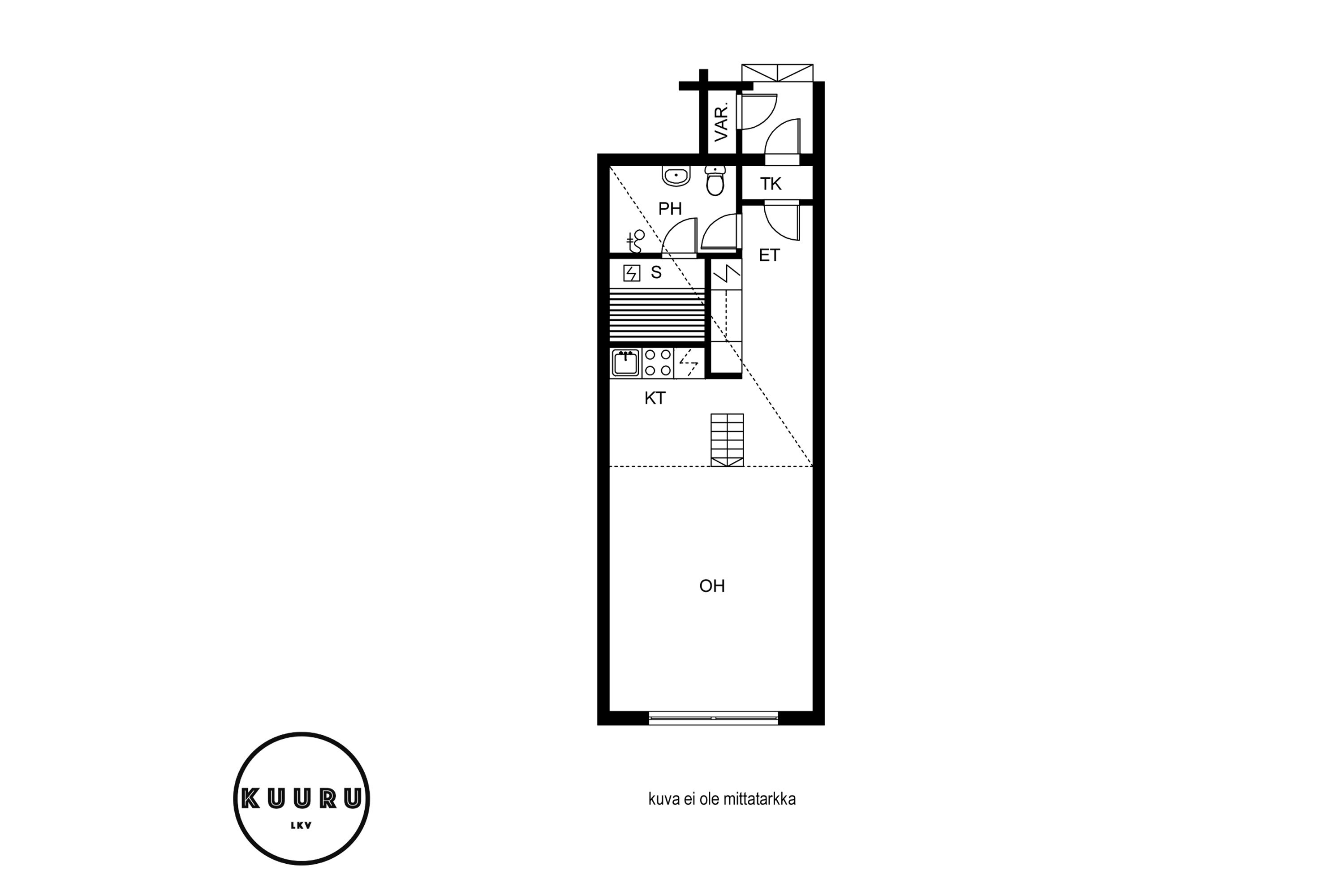 - Ei tarkistusmitattu. Pinta-alat saattavat tämän ikäisissä kohteissa (yhtiö rekisteröity ennen 1.1.1992) poiketa olennaisestikin asuinrakennusten nykyisten mittaustapojen ja standardien (SFS 5139) mukaan laskettavasta asuintilojen pinta-alasta. Pinta-ala voi siis olla edellä mainittua pienempi tai suurempi.