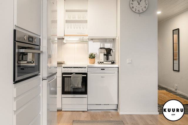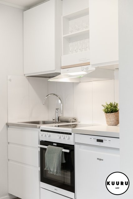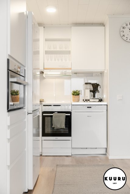 - Jääkaappi, uuni, liesi, liesituuletin, mikroaaltouuni, ja astianpesukone