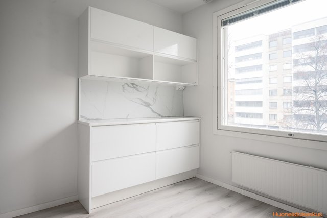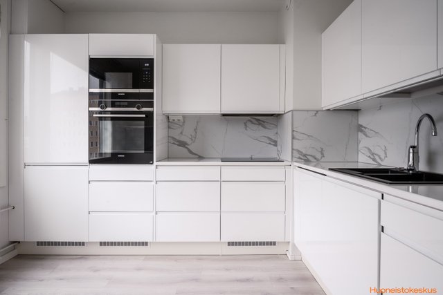 - Jääkaappipakastin, erillisuuni, induktioliesitaso, mikro, astianpesukone, kaapistot. Seinät maalattu, lattia vinyyliä. Keittiö uusittu 2021.