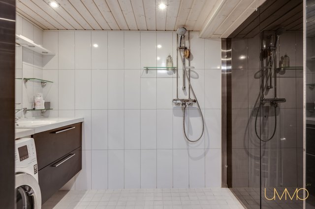 - Suihku, lattialämmitys, peili, pesuallas, ja allaskaappi