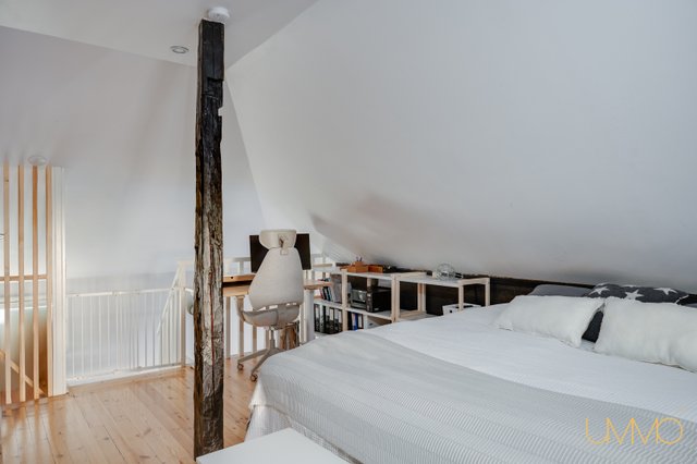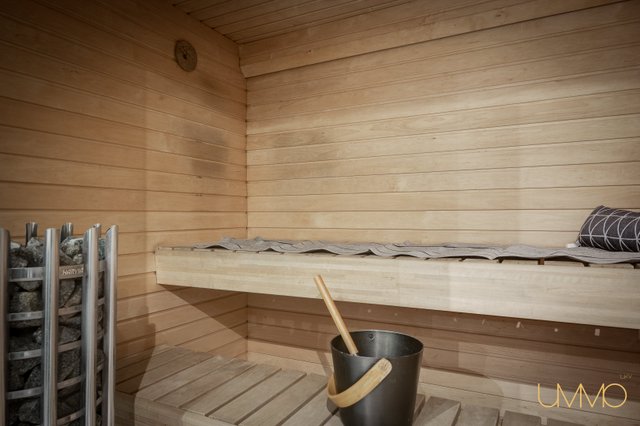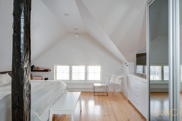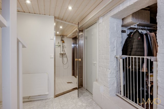 Makuuhuone on sijoitettu yläkertaa ja tämän tunnelma takaa täydelliset puitteet rentoutumiseen. Lisäksi yläkertaan saat sijoitettua helposti etätyöpisteen ja säilytystilaa löytyy todella hyvin. Kodin alakerrasta löytyy paljon varastointitilaa ja lisäksi kylpyhuone, jonka yhteydessä myös sauna.