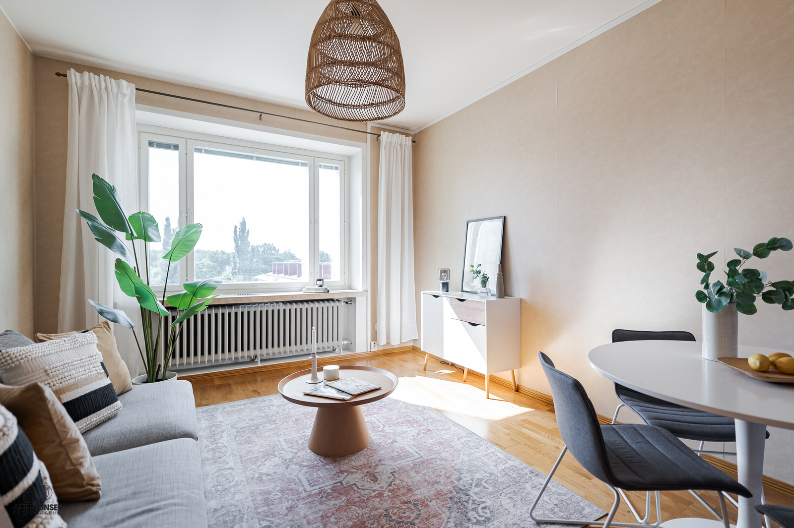 Erinomaisella paikalla kaunis ylimmän kerroksen (6/6 krs) kaksio. Läpitalon asunnossa on loistava pohjaratkaisu. Olohuone ja avokeittiö ovat nykytoiveiden mukaisesti yhtä avaraa tilaa ja ikkunasta avautuvat upeat näkymät etelään. Isossa makuuhuoneessa on paljon kaappitilaa ja sinne mahtuu vaikka työpiste. Näkymät ovat stadionille. Ison kylpyhuoneen lisäksi on vielä erillinen wc. Tästä kodista löytyvät myös kauniit leveät ikkunapenkit, joista monet haaveilevat. Huoneistossa on todella edulliset asuinkustannukset; hoitovastike vain 154,- e/kk.