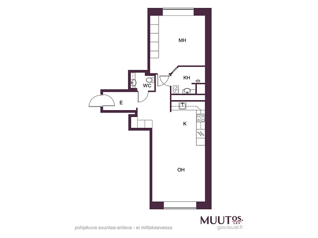 - Suihku, pesukoneliitäntä, sähköinen lattialämmitys.