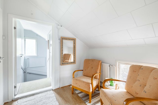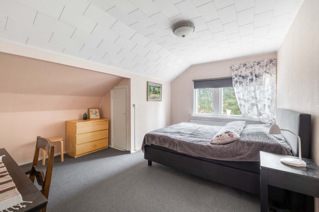 - Keskikerroksen makuuhuoneen lattia: laminaatti, seinät: tapetti/maalattu Yläkerran makuuhuoneen lattia: muovimatto, seinät: tapetti Yläkerran toisen makuuhuoneen lattia: lauta, seinät: puolipaneeli/tapetti