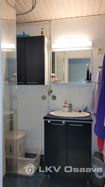 - Suihku, suihkuseinä, allaskaappi, pesuallas, peili, ja kaapistot