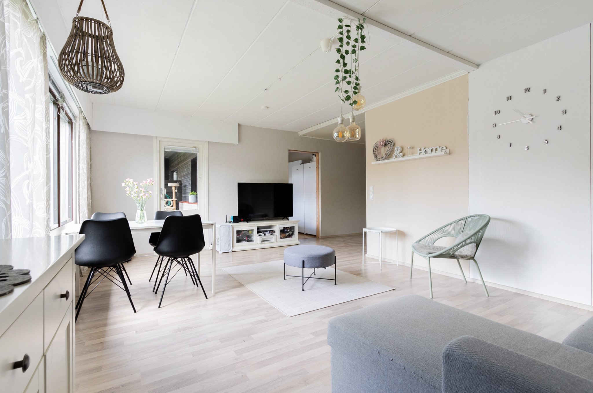 Keittiö on remontoitu vastaamaan nykypäivän tarpeita, ja sieltä löytyvät kaikki tarvittavat kodinkoneet arjen helpottamiseksi. Olohuone ja makuuhuoneet on sisustettu laminaattilattioilla ja maalatuilla tai tapetoiduilla seinillä, luoden lämpimän ja kutsuvan tunnelman. Oma sauna tarjoaa rentoutumishetkiä kiireisen päivän päätteeksi.
