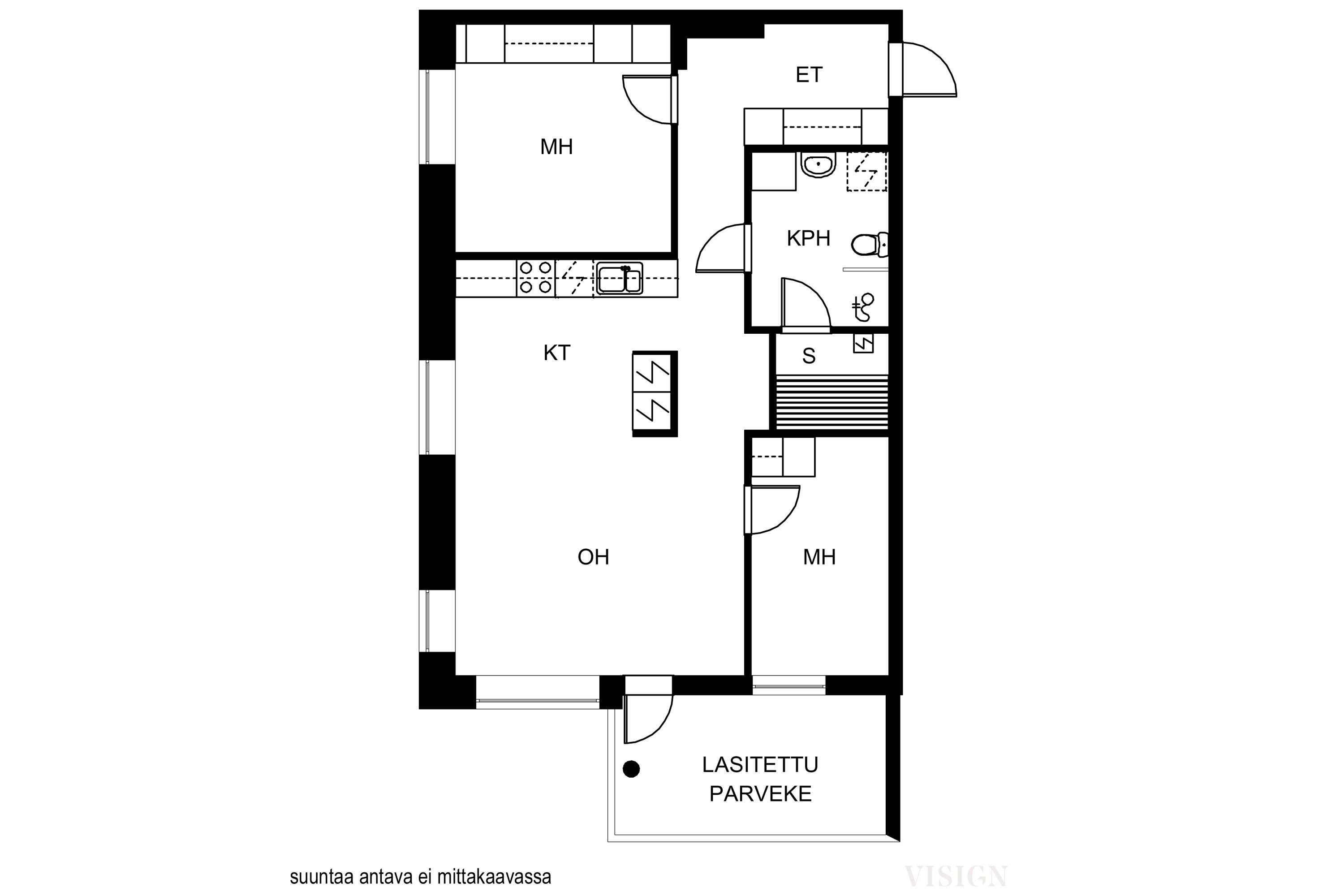 - Isännöitsijäntodistuksen mukainen, (Pinta-ala ei ole tarkistusmitattu ja todellinen pinta-ala voi olla suurempi tai pienempi, kuin ilmoitettu)