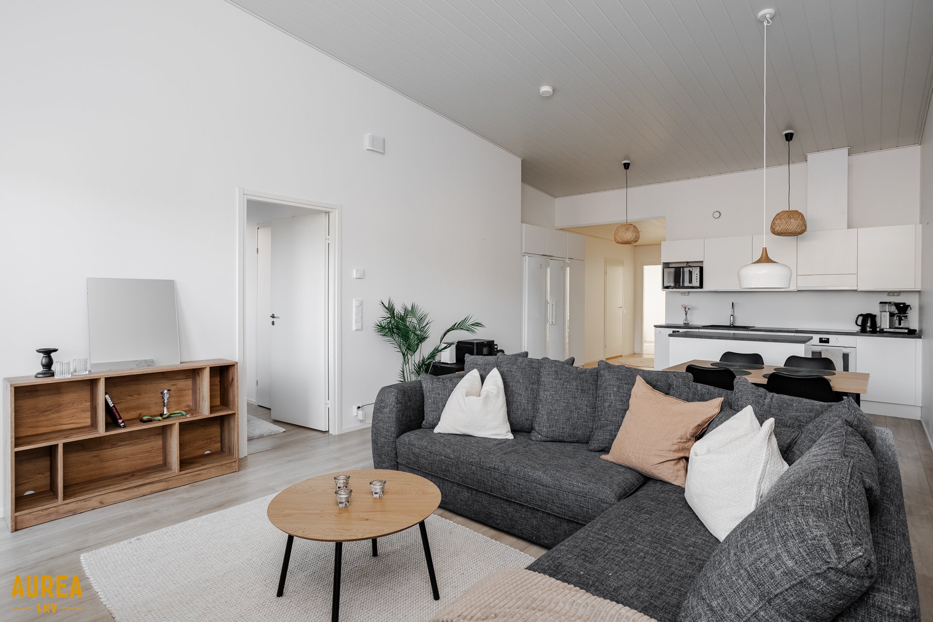 Asunnossa on kolme kivankokoista makuuhuonetta sekä kodin sydämenä toimii olohuoneen ja keittiön yhteinen tila. Oma erillinen kodinhoitohuone tuo mukavuutta arkeen ja lisäksi kodista löytyy myös erillinen wc. Tilava ja tunnelmallinen kylpyhuone kera saunan tuo luksusta arkeen. Asuinneliöitä on yhteensä 91m2, joten tämä koti soveltuu hyvin monenlaisiin perhekokoihin.