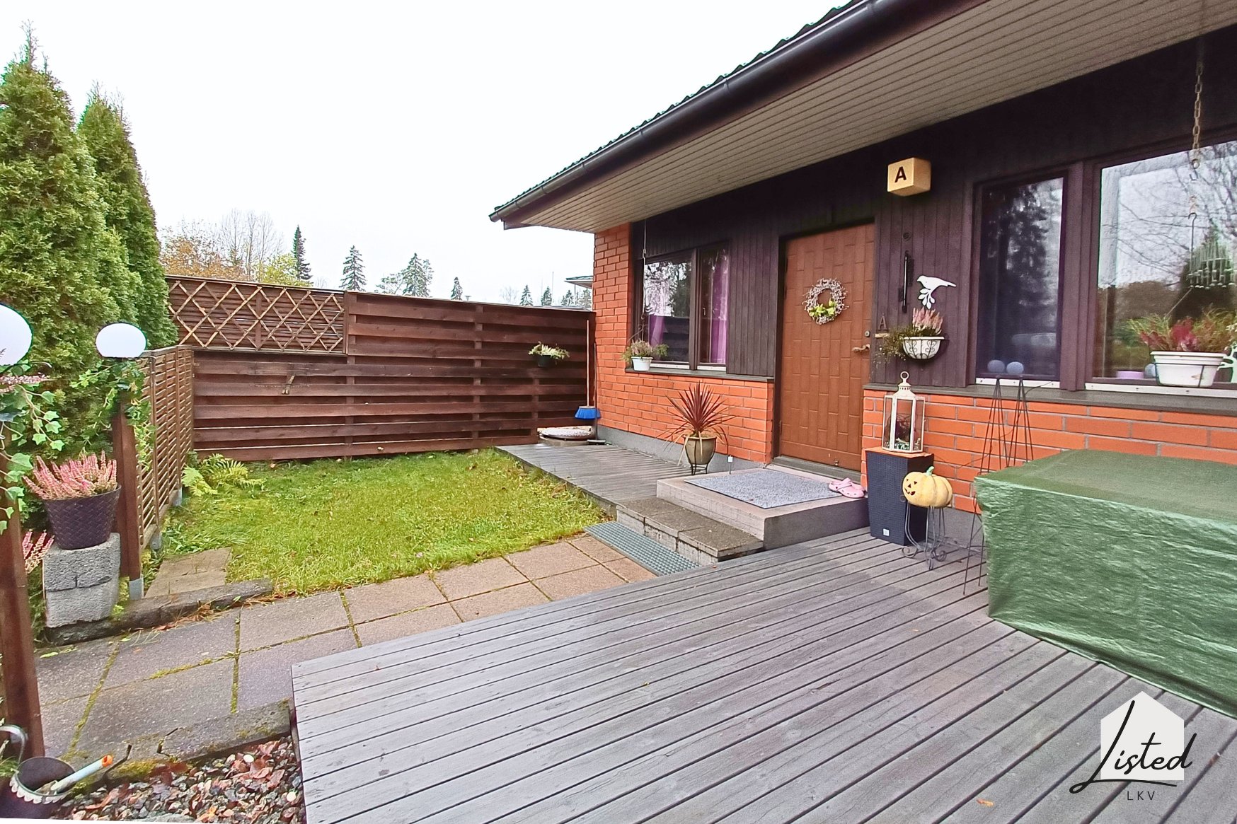 - Suojaisat piha-alueet (etu- ja takapiha). Pihalla istutuksia, pensaita ja terassi.