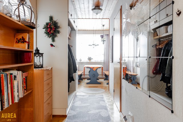 Kodissa tilava olohuone sekä keittiö. Makuuhuoneen yhteydessä runsaasti kaapistoja säilytykselle ja eteisen yhteydessä lisäksi tilava vaatehuone. Kylpyhuoneessa liitännät pyykinpesukoneelle sekä tietenkin oma sauna.