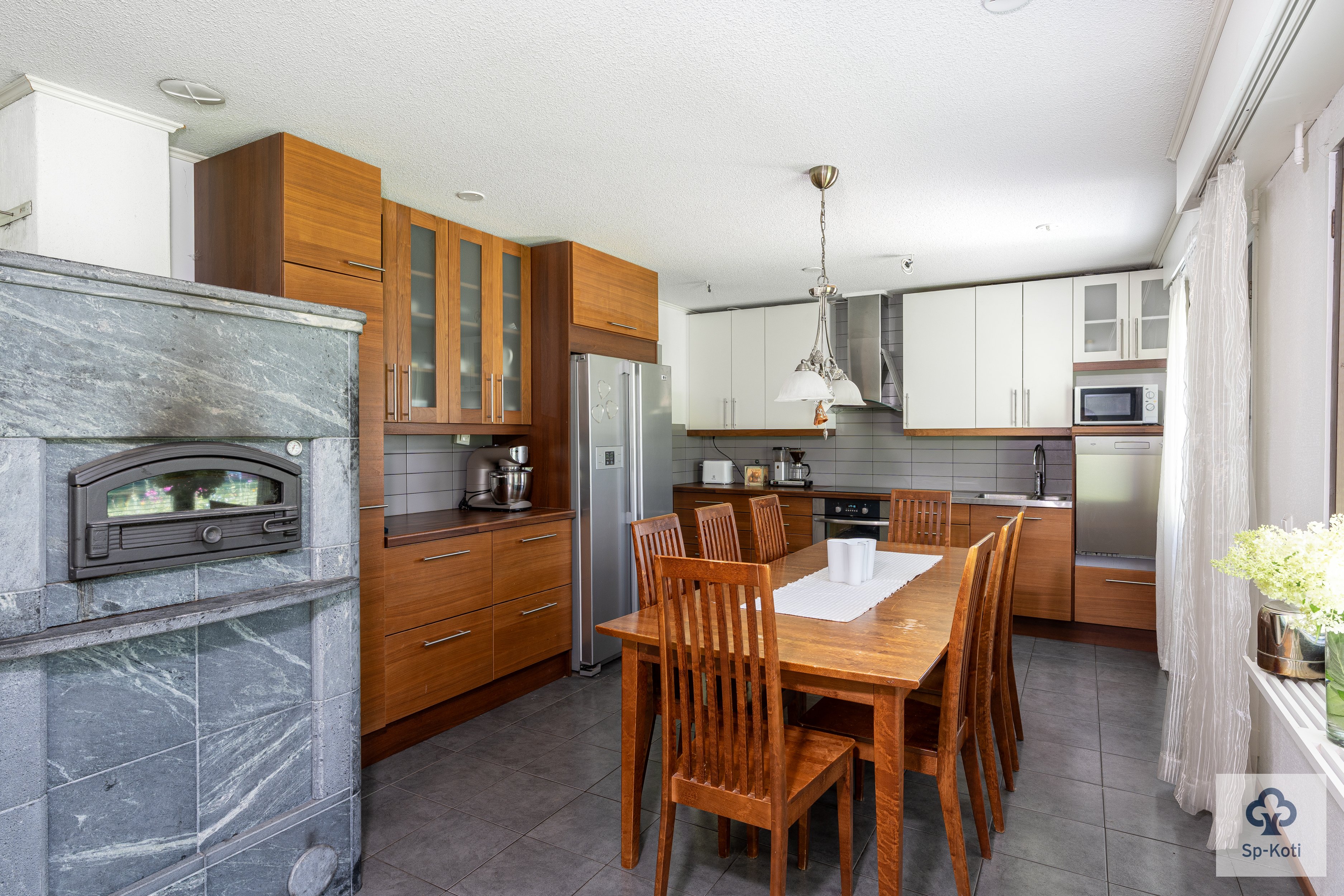 Kodissa yhdistyvät viihtyisyys ja käytännöllisyys. Olohuone ja keittiö muodostavat avaran kokonaisuuden, jonka sydämenä on kaunis lämpöä varaava takka-leivinuuni. Se luo tunnelmaa pimeneviin syys- ja talvi-iltoihin ja auttaa samalla pitämään lämmityskustannukset kurissa. Keittiö on varusteltu nykyaikaisilla mukavuuksilla ja tarjoaa tilaa isommallekin ruokapöydälle, jonka ääreen koko perhe mahtuu viihtymään. Kolme makuuhuonetta antavat joustavasti tilaa perheelle, työskentelyyn, vieraille tai harrastuksiin. Sauna puukiukaineen kutsuu rentoutumaan lempeissä löylyissä.