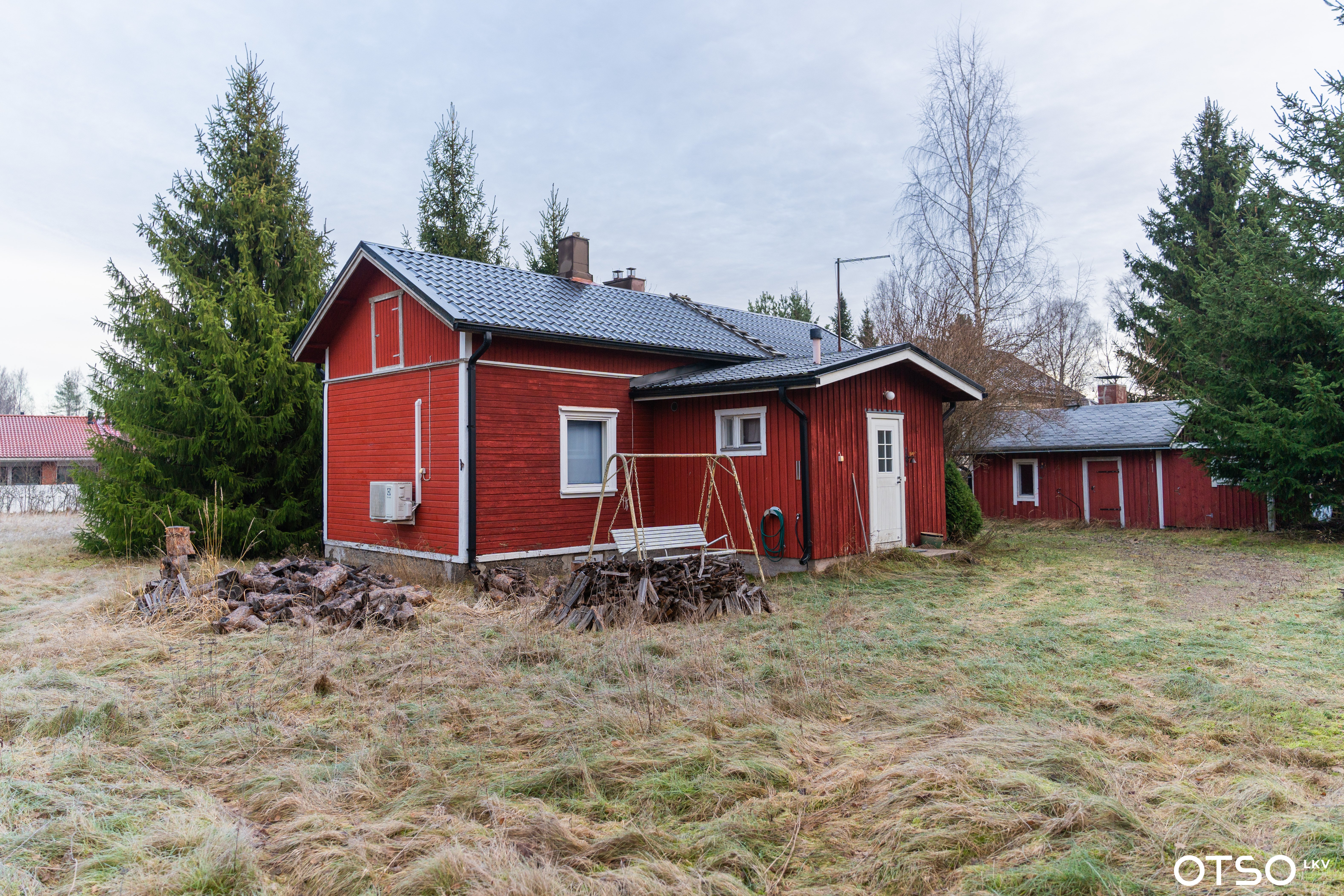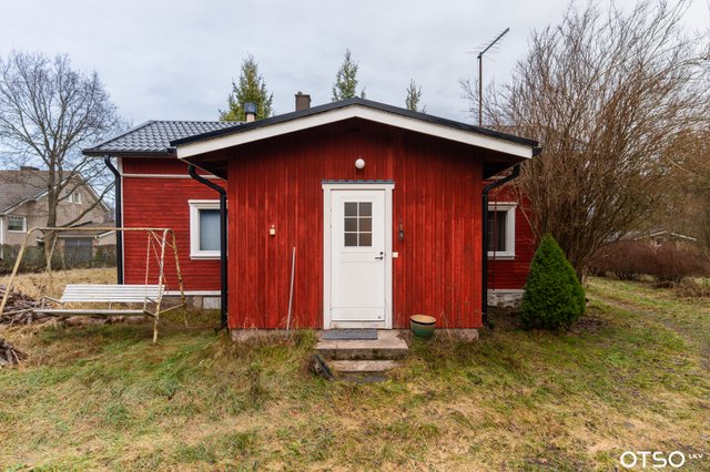 Talossa on kaksi huonetta ja keittiö sekä pesuhuone.