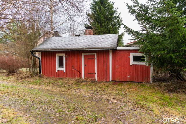 Pihapiirissä myös tilava varastorakennus ja pihasauna,