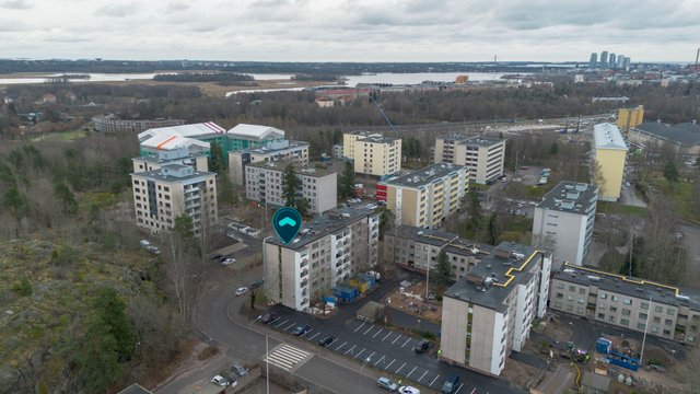 Tämä päätyhuoneisto tarjoaa mainion pohjaratkaisun ja valoisuutta kolmeen suuntaan. Tilava olohuone, minkä yhteydessä lasitettu parveke. Olohuoneen vieressä toinen makuuhuone, jonka vierestä löytyy reilun kokoinen vaatehuone. Pitkästä eteisestä on käynti toiseen makuuhuoneeseen, josta löytyy tilaa ison sängyn lisäksi esimerkiksi työpisteelle. Keittiöstä löytyy runsaasti kaappi- ja laskutilaa. Kylpyhuone on juuri uusittu putkiremontin yhteydessä.