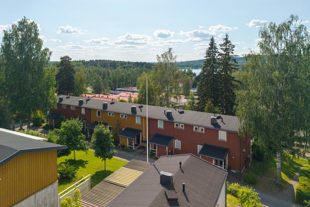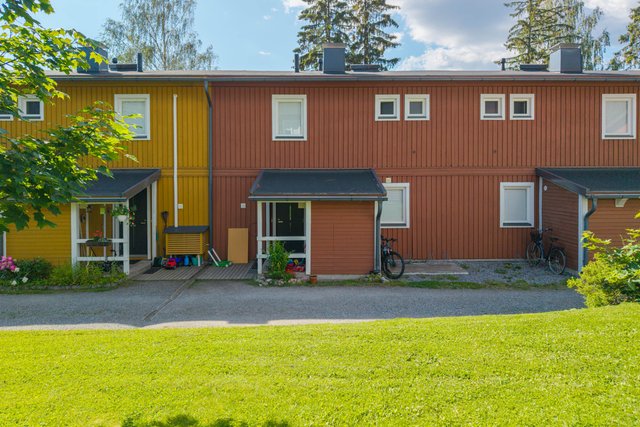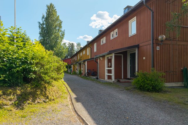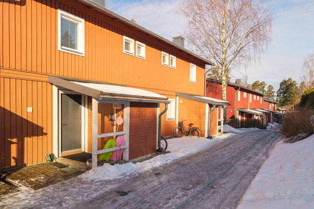 Molemmissa kerroksissa on wc:t ja yläkerran kylpyhuoneen yhteydessä myös ihastuttava sauna. Yläkerran toisen makuuhuoneen jatkeena on parveke. Alakerrasta löytyy puolestaan helppohoitoinen terassi grillailuun ja kesäpäivistä nauttimiseen. Huoneiston sisäänkäynnin yhteydessä on ulkovarasto ja autolle löytyy paikka taloyhtiön parkkialueelta. Pihapiiri on suojaisa ja palvelut lähettyvillä. Kävelymatkan päässä on myös julkinen uimaranta ja koulu sekä päiväkoti, joten tässä yhdistyvät kaikki, mitä sujuvaan lapsiperhearkeen tarvitaan. Mikä parasta, tänne muutat heti kaupasta!