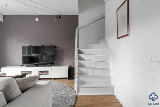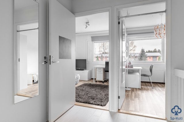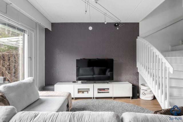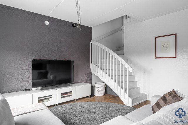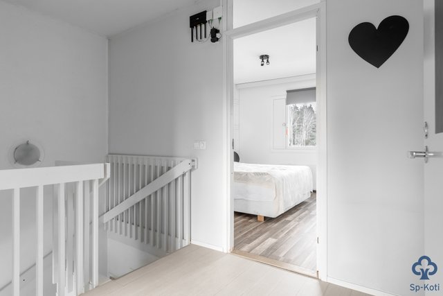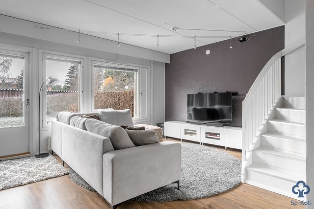 Alakerrassa on keittiö, joka on juuri remontoitu, tilava olohuone, josta on käynti suojaisalle takapihalle ja erillinen wc. Yläkerrassa on kolme makuuhuonetta, sauna- ja pesutilat, jotka on remontoitu vuonna 2017.