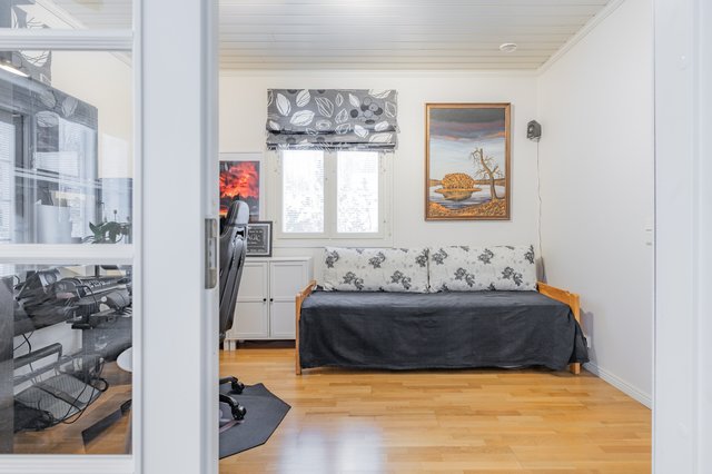 Lyhyen kävelymatkan päässä on leikkipuisto ja koulu. Hiihto- ja ulkoilureiteille pääset suoraan omalta pihaltasi. Keskustan palvelutkin ovat vain lyhyen matkan päässä. Tartu tilaisuuteen ja tee tästä talosta unelmiesi koti!