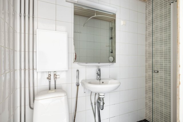 - WC-istuin, suihku, pesukoneliitäntä, peili, pesuallas, ja bidee-suihku