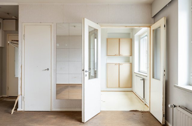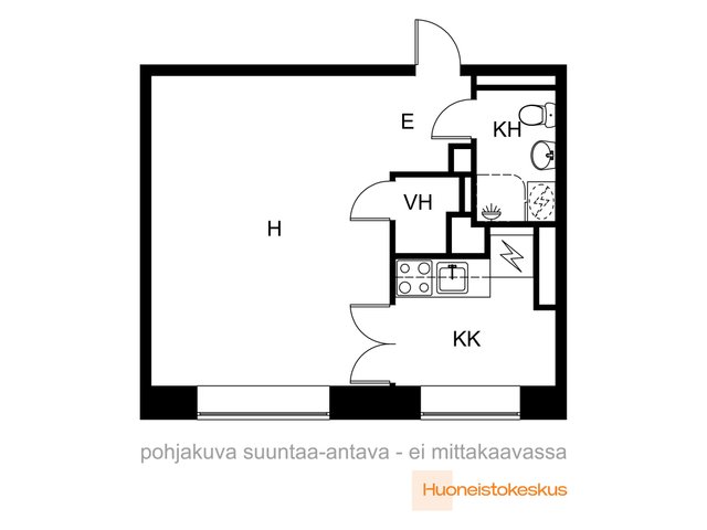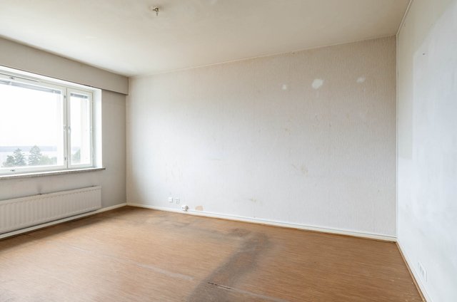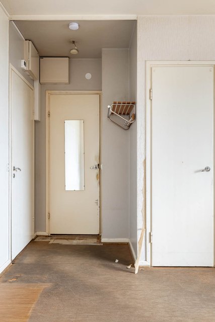 - Asunnon alkuperäinen lattiamateriaali on huonokuntoinen ja vaatii päivityksen. Kylpyhuoneen ovi on uusittava.