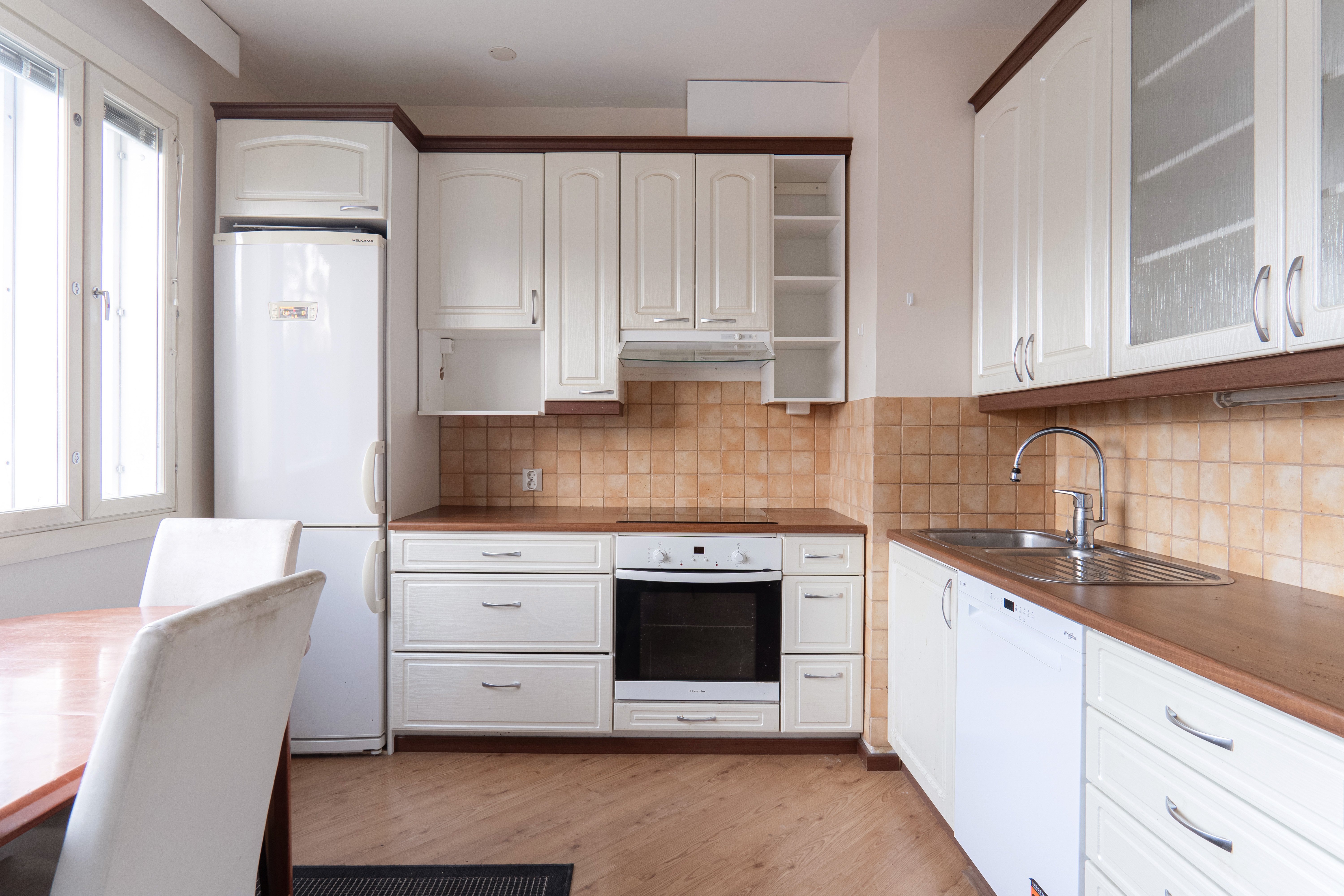 - Jääkaappipakastin, erillisuuni, ja astianpesukone